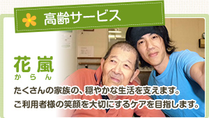 施設名の由来でもある「花も嵐も乗り越えて」きた方々を温かくお迎えし、在宅での生活が困難になっても、生き生きとした生活が継続できるように、心のこもったご支援を心がけています。