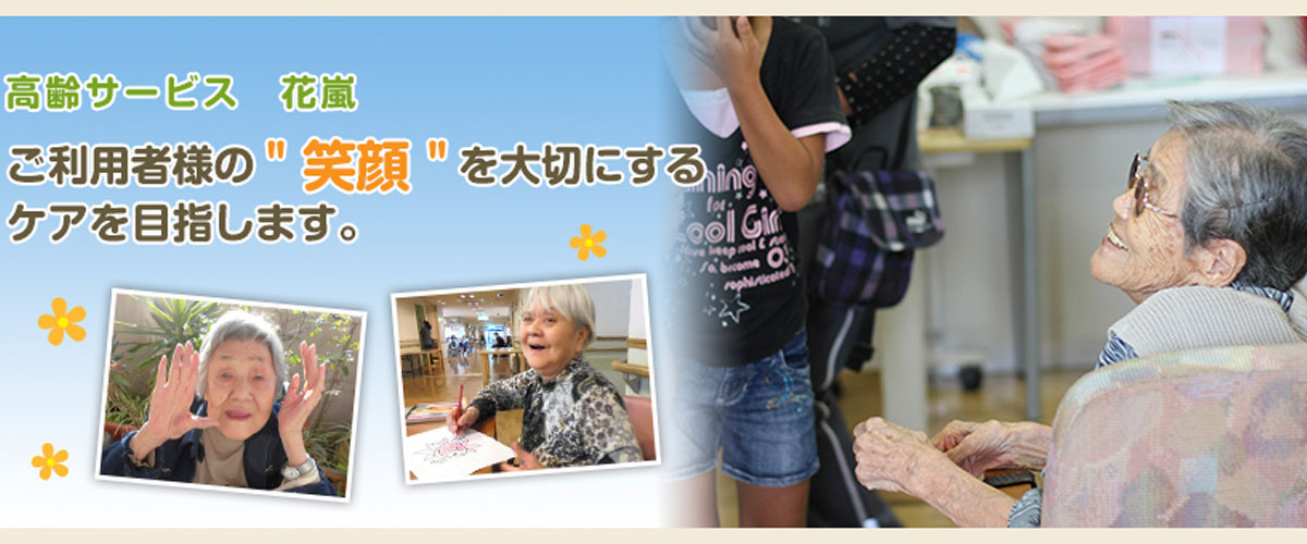 施設名の由来でもある「花も嵐も乗り越えて」きた方々を温かくお迎えし、在宅での生活が困難になっても、生き生きとした生活が継続できるように、心のこもったご支援を心がけています。